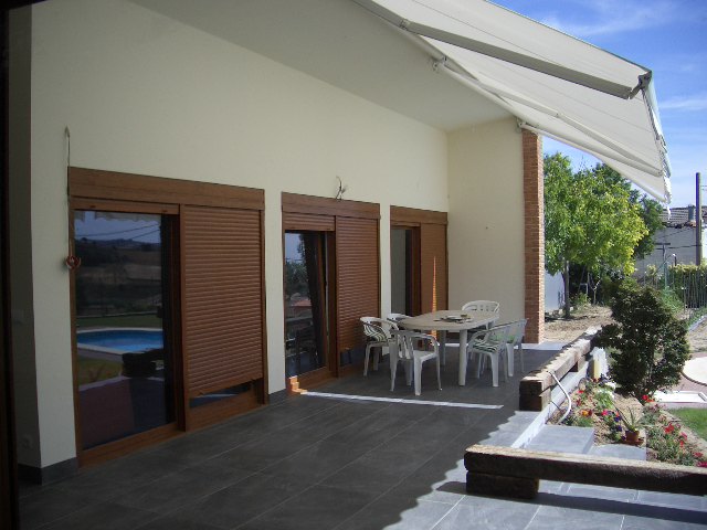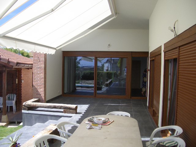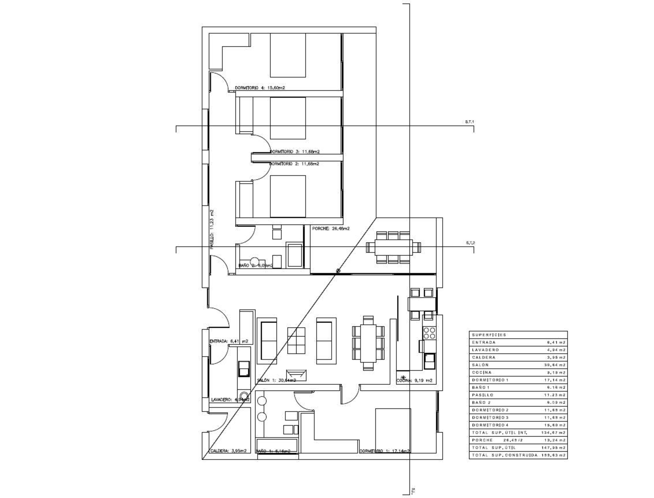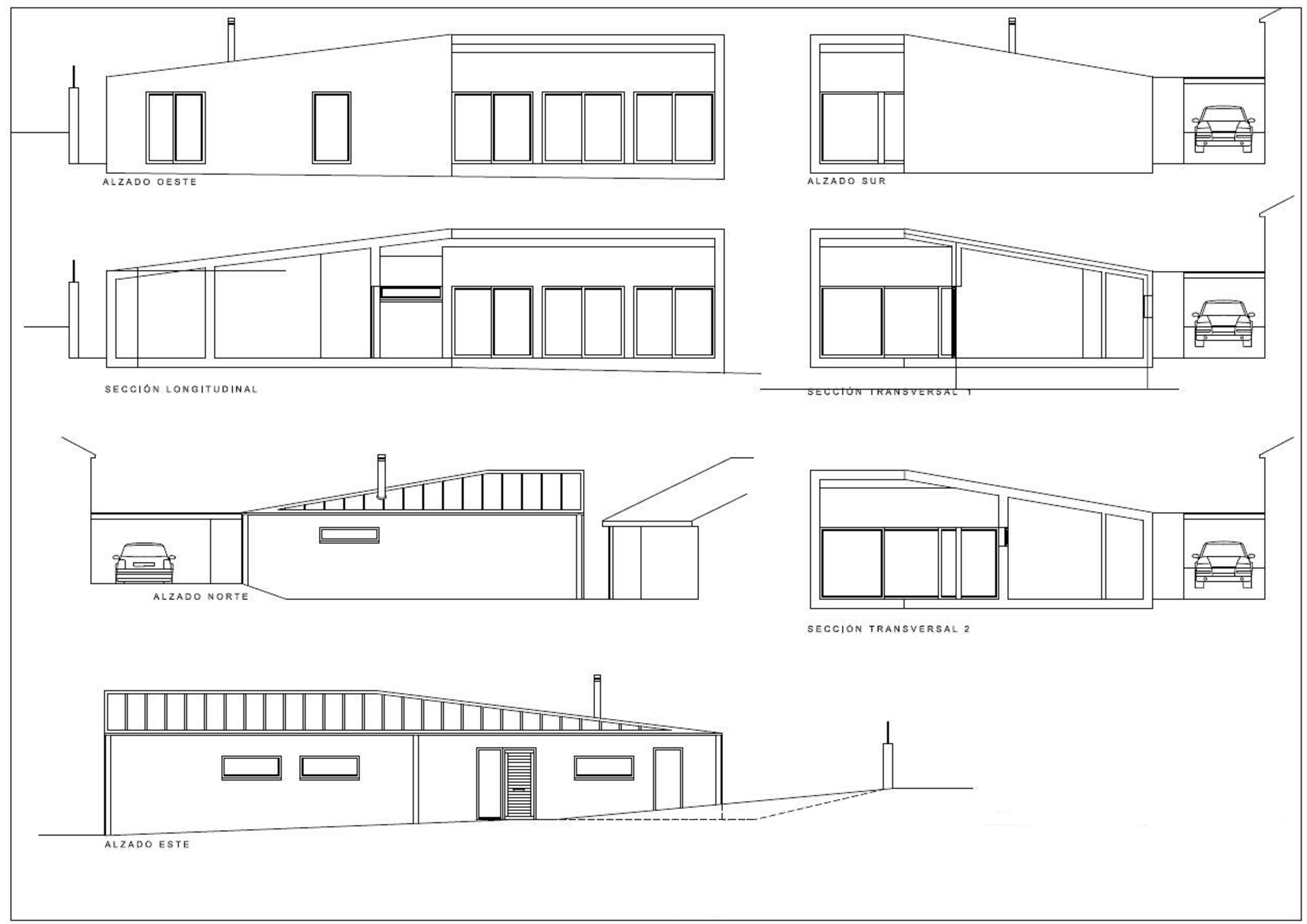 determinadas por la existencia de edificios colindantes. El objetivo es dejar libre y protegido de las vistas y del viento predominante la mayor parte del terreno para su disfrute. El salón y los dormitorios se abren con grandes ventanales al jardín y se protegen con un porche que recorre toda la fachada.