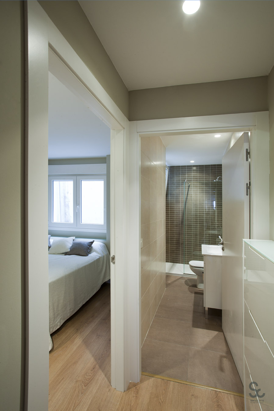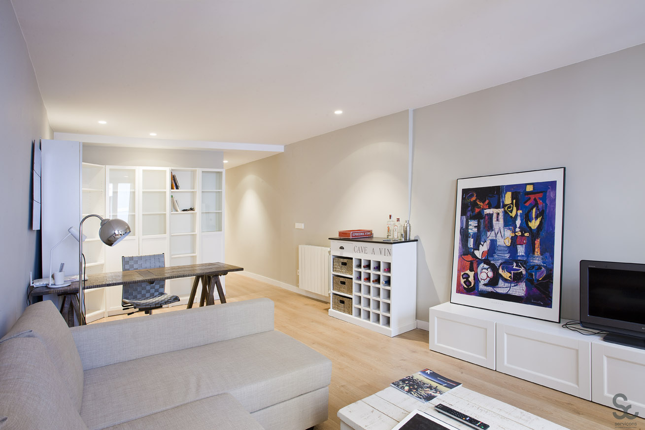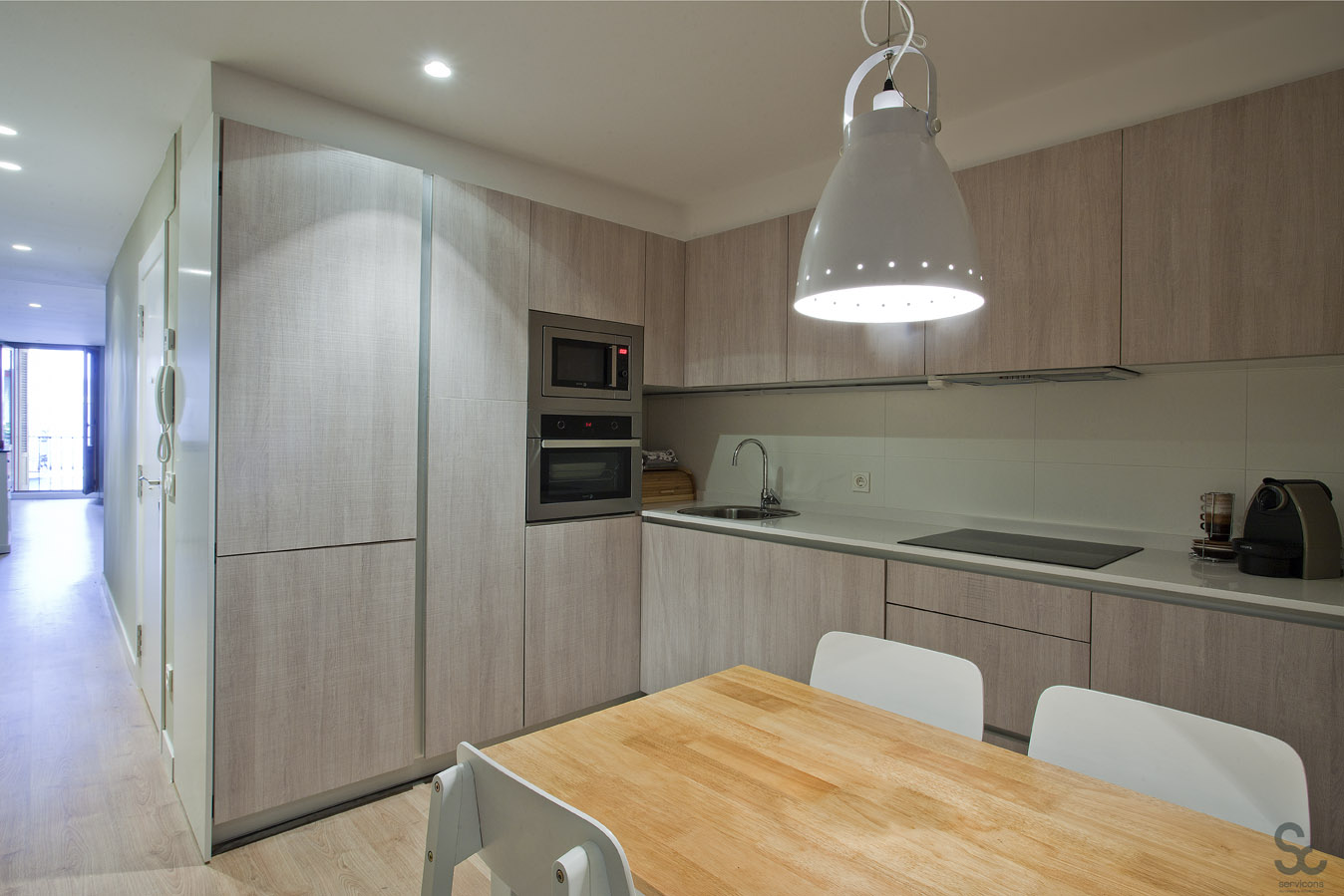 Reforma integral de vivienda en el casco antiguo de la ciudad. Se incorporó la cocina al salón colocándola en el lugar de la antigua alcoba y creando un dormitorio donde se encontraba la cocina.