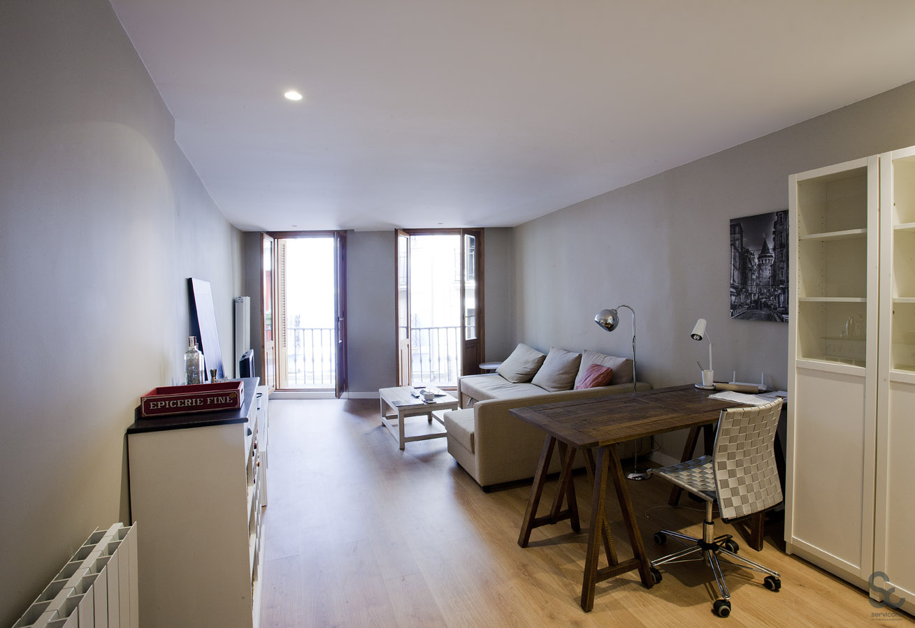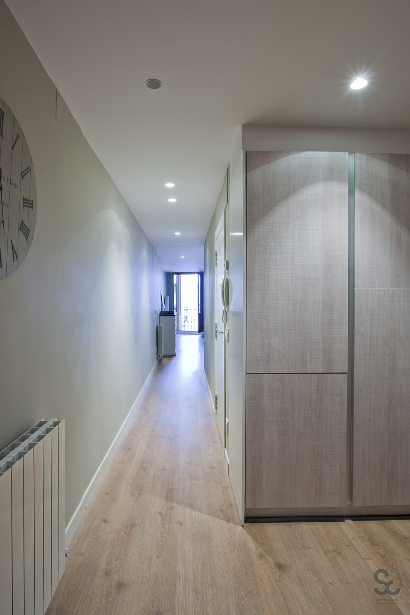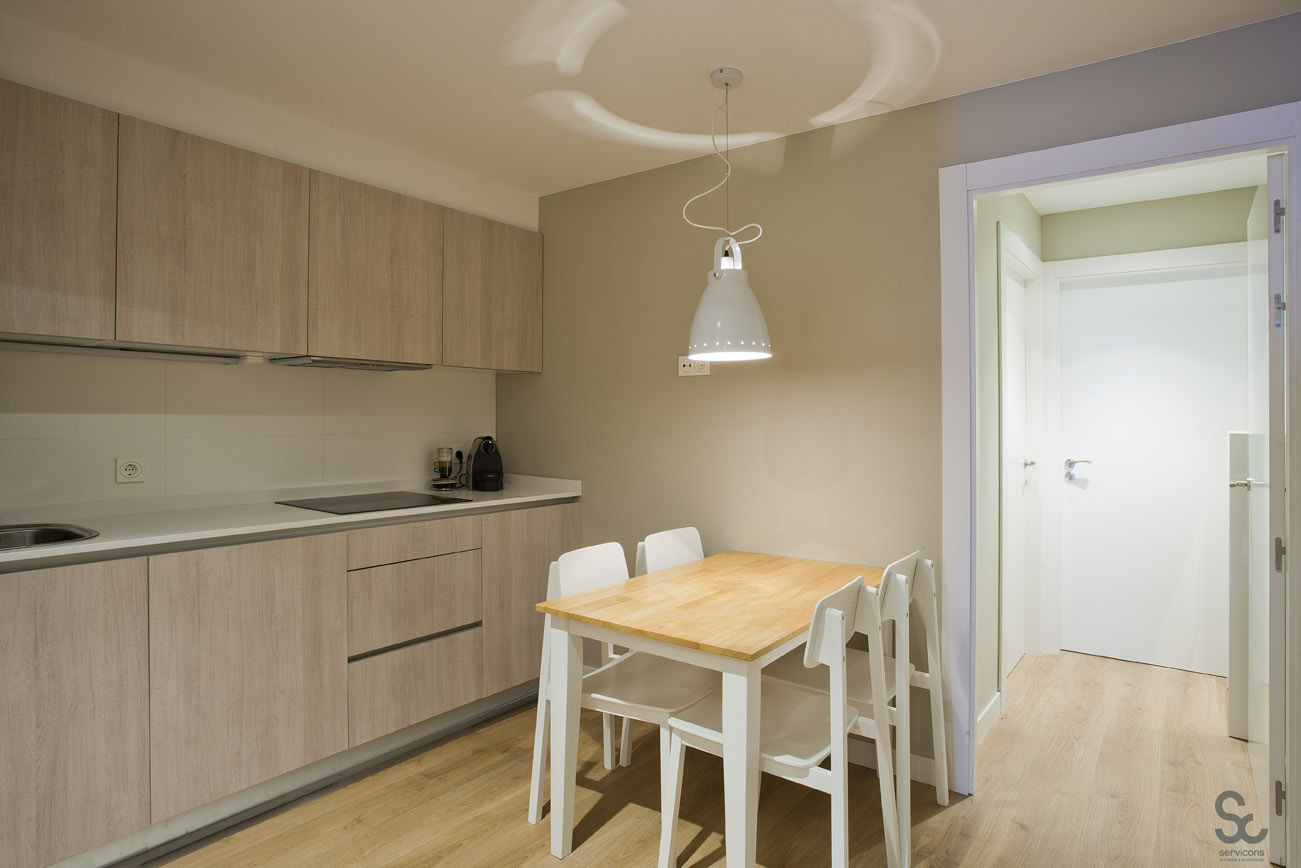 Reforma integral de vivienda en el casco antiguo de la ciudad. Se incorporó la cocina al salón colocándola en el lugar de la antigua alcoba y creando un dormitorio donde se encontraba la cocina.