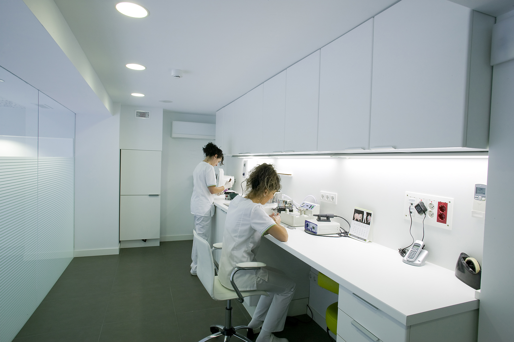 Reforma de una oficina bancaria para convertirla en una clínica de ortodoncia.