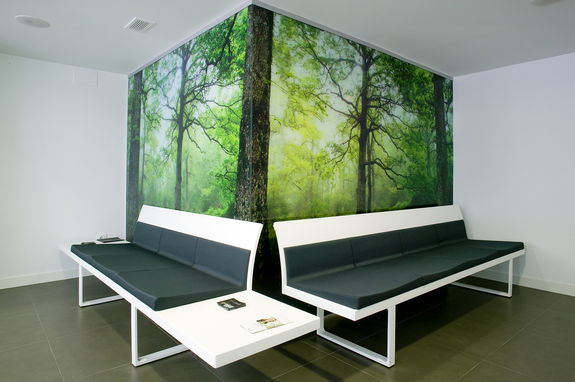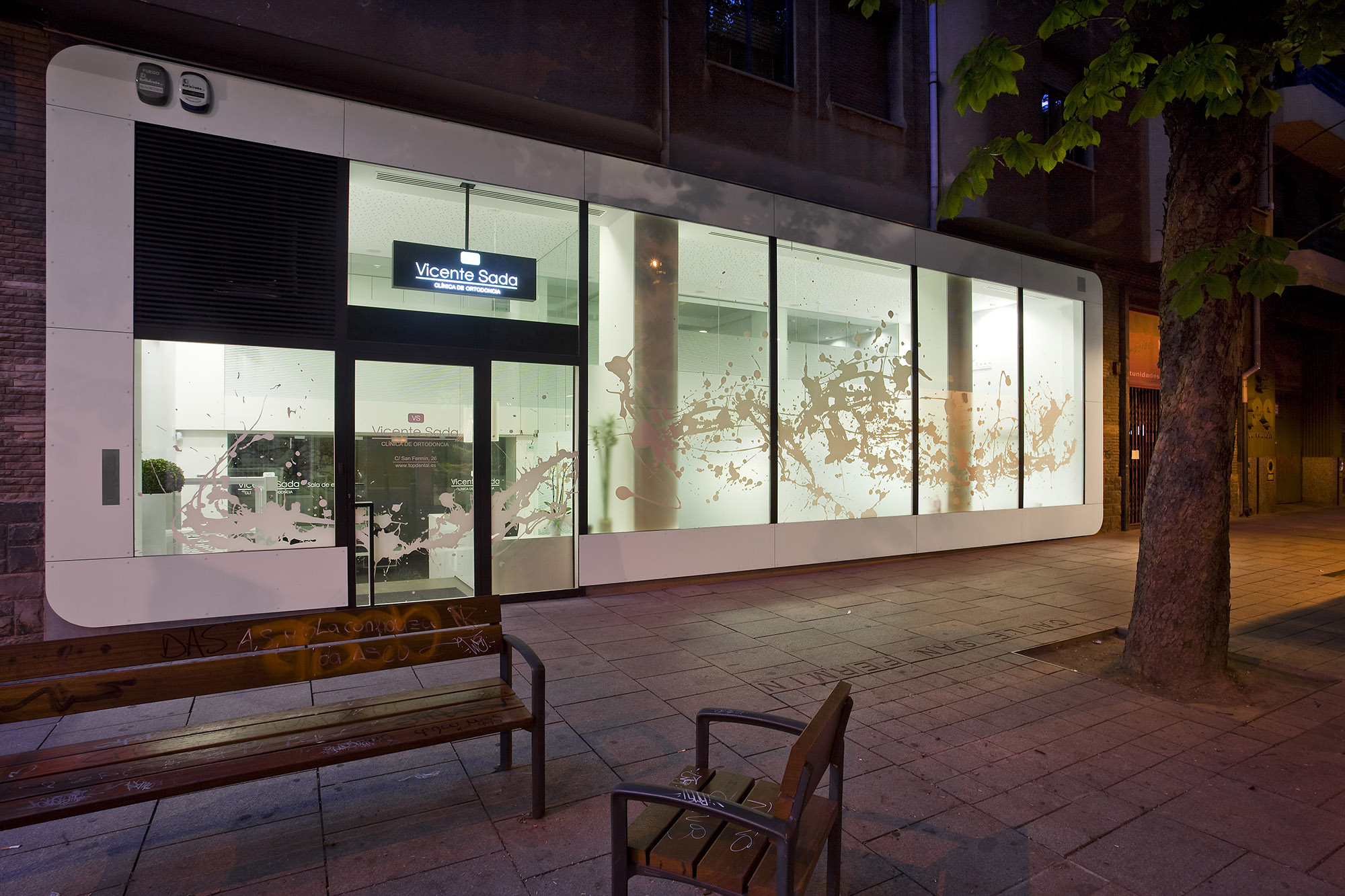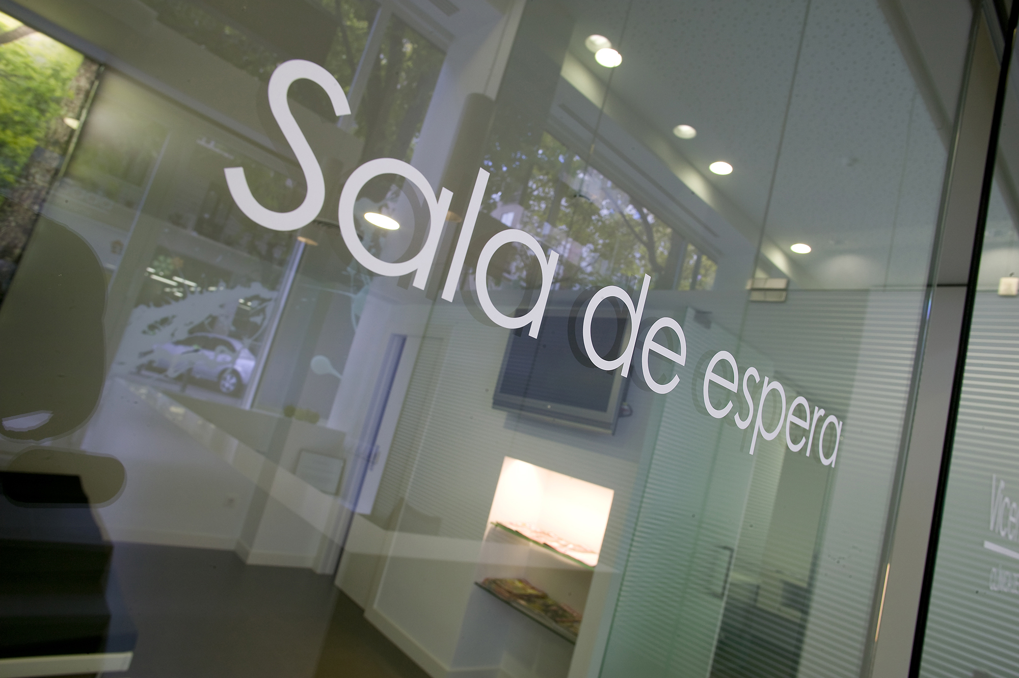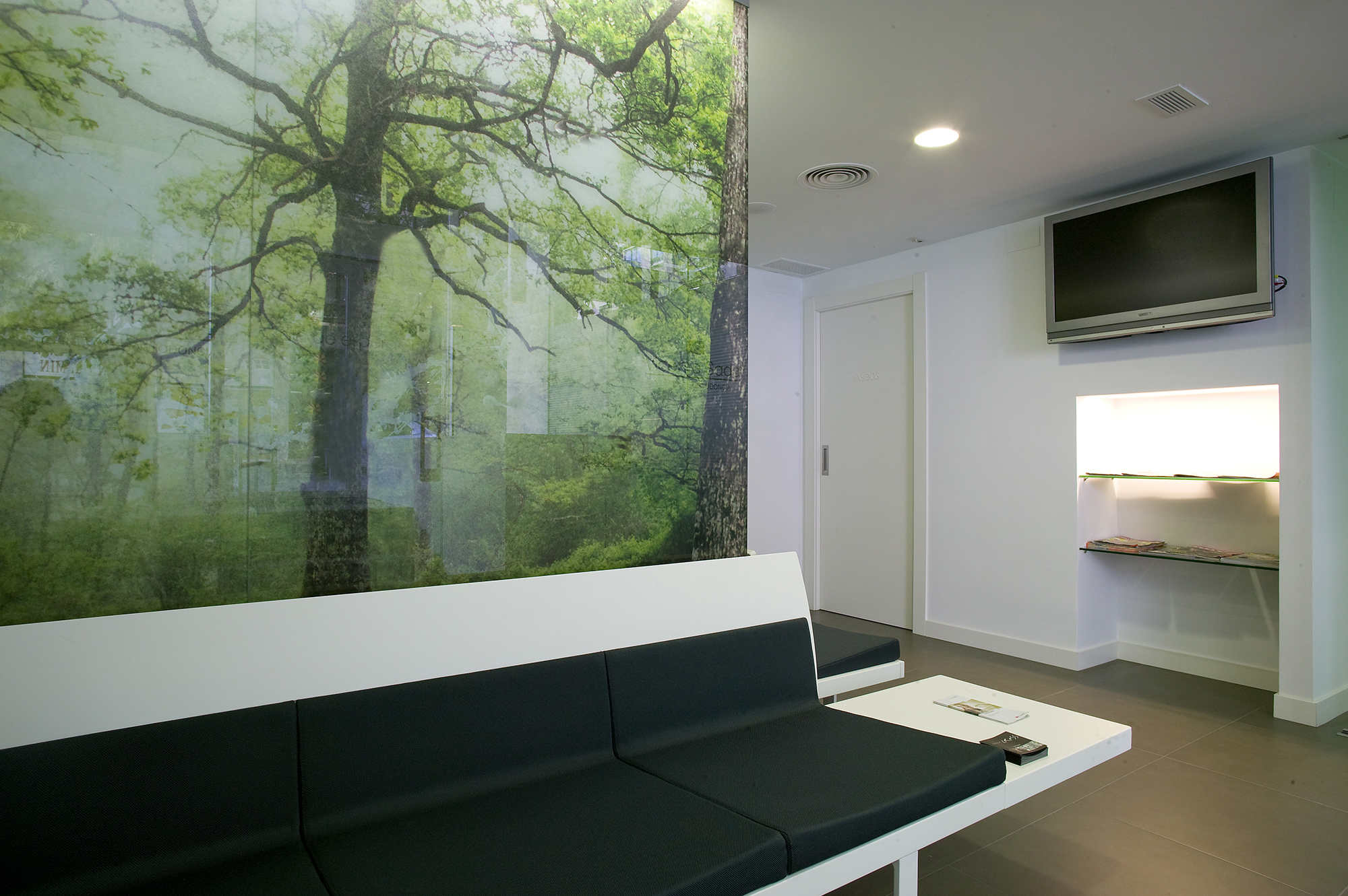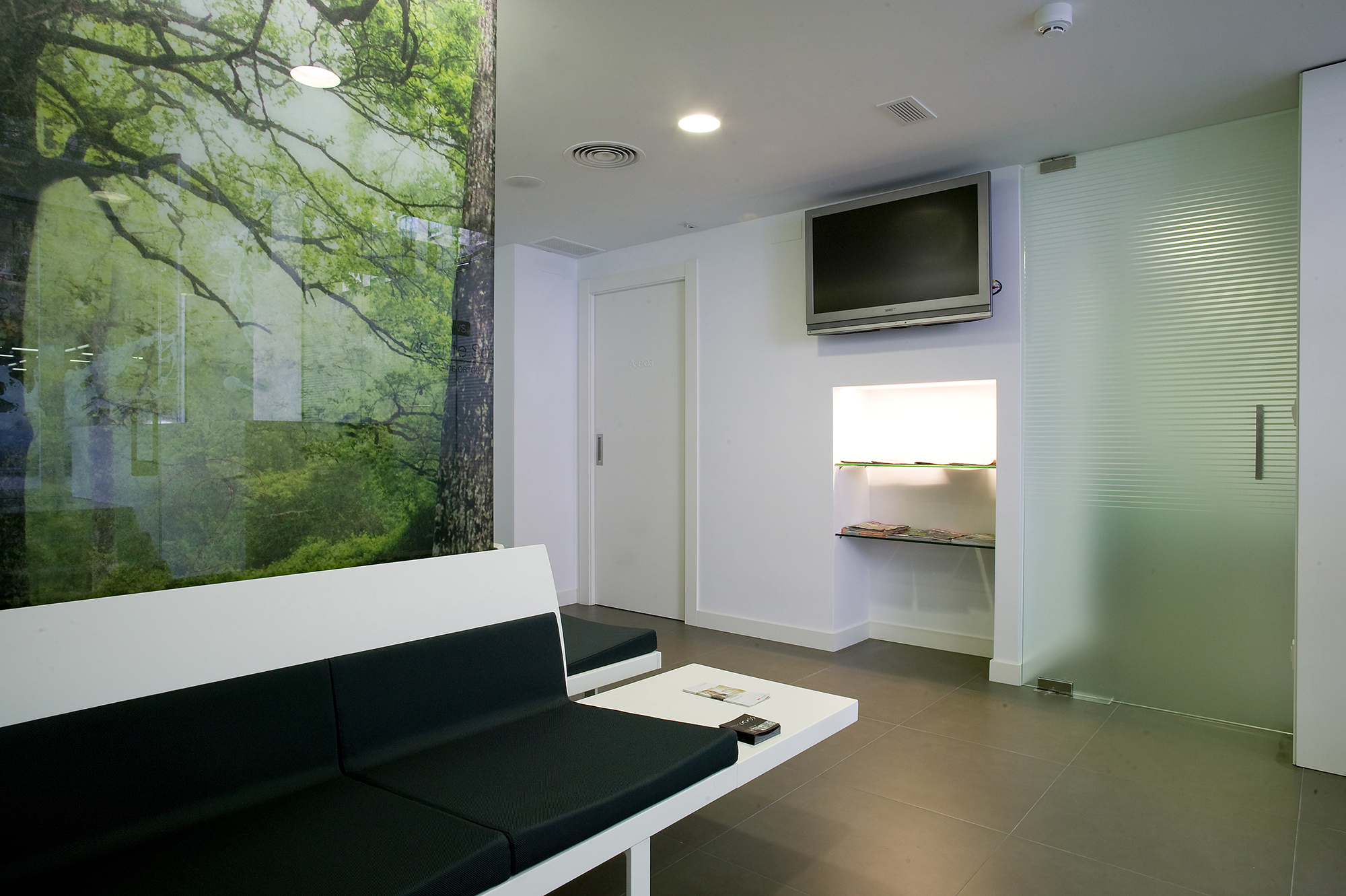 Se trataba de la típica sucursal de los años 80 en la que predominaba el granito en suelos y paredes y el acero inoxidable en las carpinterías. A la funcionalidad de los espacios para el cumplimiento del programa se aportó la utilización de paños acristalados en divisiones interiores y el predominio del color blanco para que reflejaran el resultado final de los tratamientos dispensados. Se quiso destacar especialmente la fachada con un diseño rompedor que la hiciera destacar en una calle oscura por la presencia de árboles de gran porte.